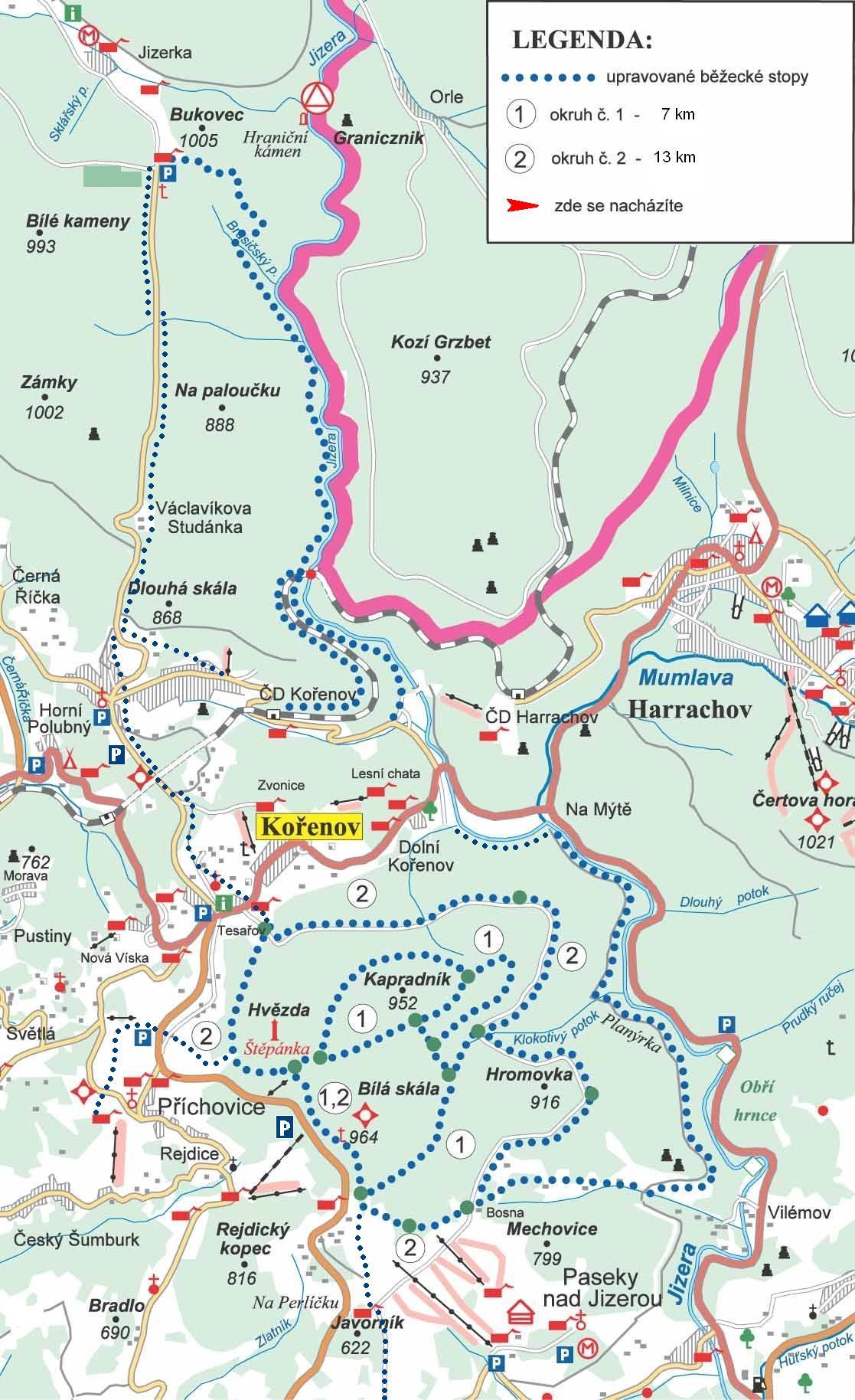Mapa udržovaných běžeckých tras :