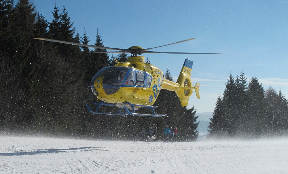 Přistání vrtulníku na konečné lanové dráhy.